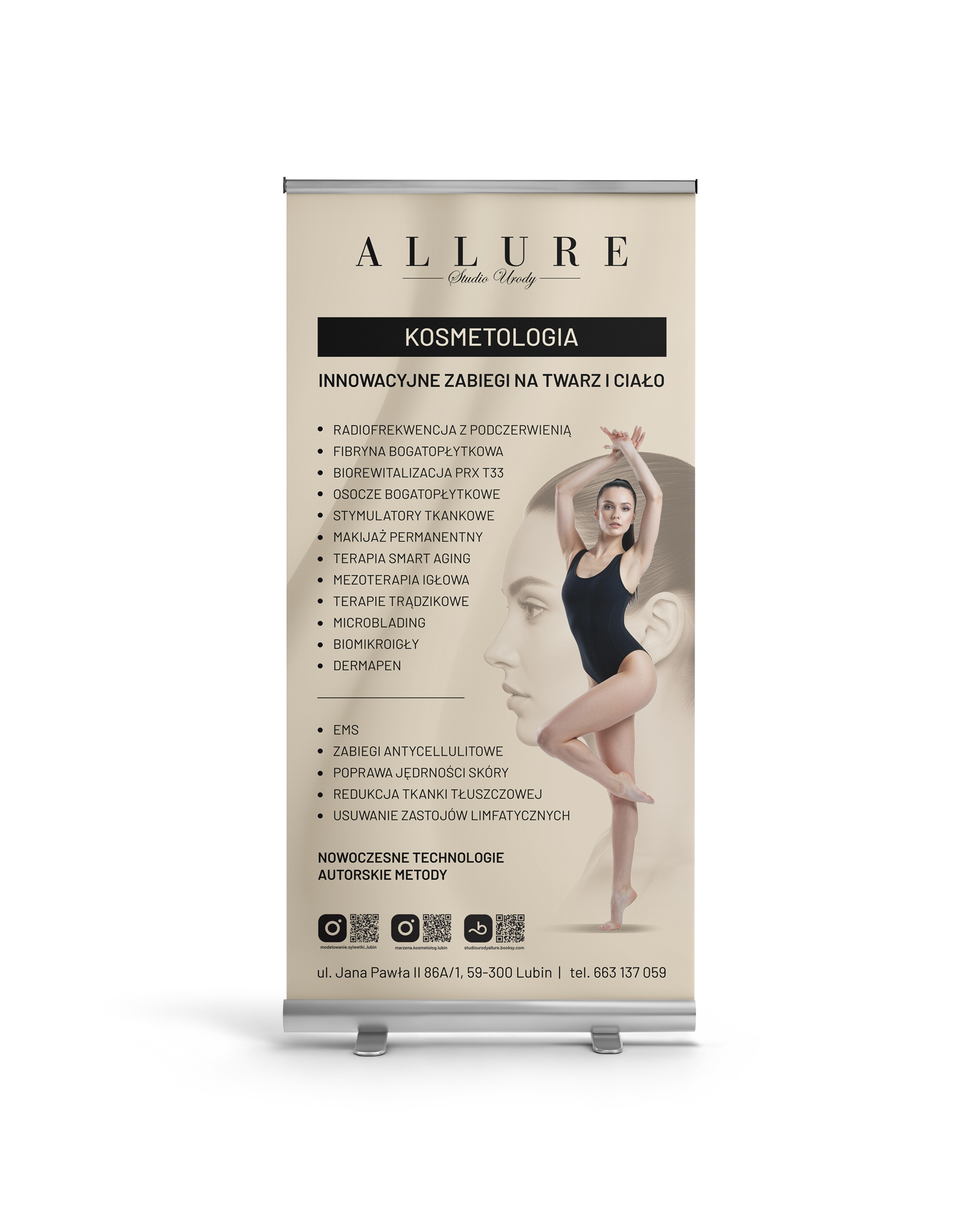 Projekt i druk roll-upa dla studia urodu Allure z Lubin