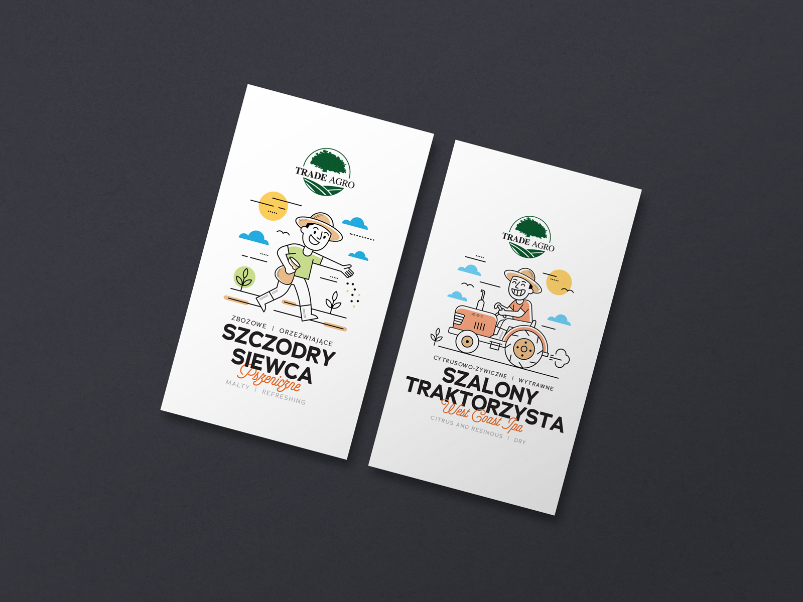 Projekty etykiet na piwo “Szczodry siewca” oraz “Szalony traktorzysta” dla firmy
